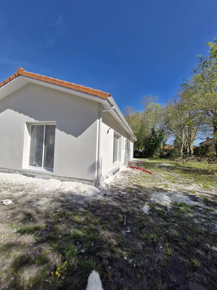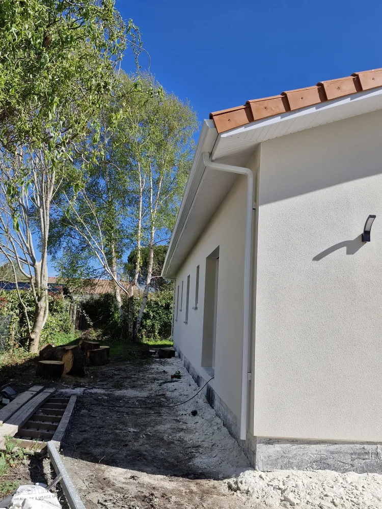 13-04-2026 Chantier sur Biscarrosse Gouttière blanche G325 et descente rectangulaire 60/80 blanche sur maison neuve.
