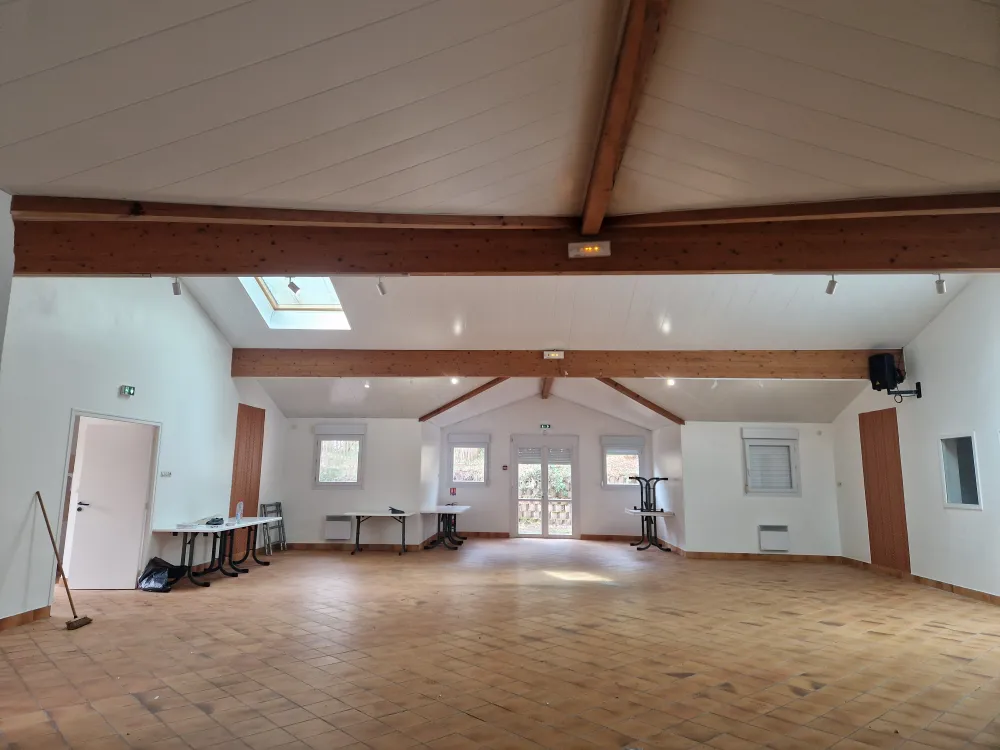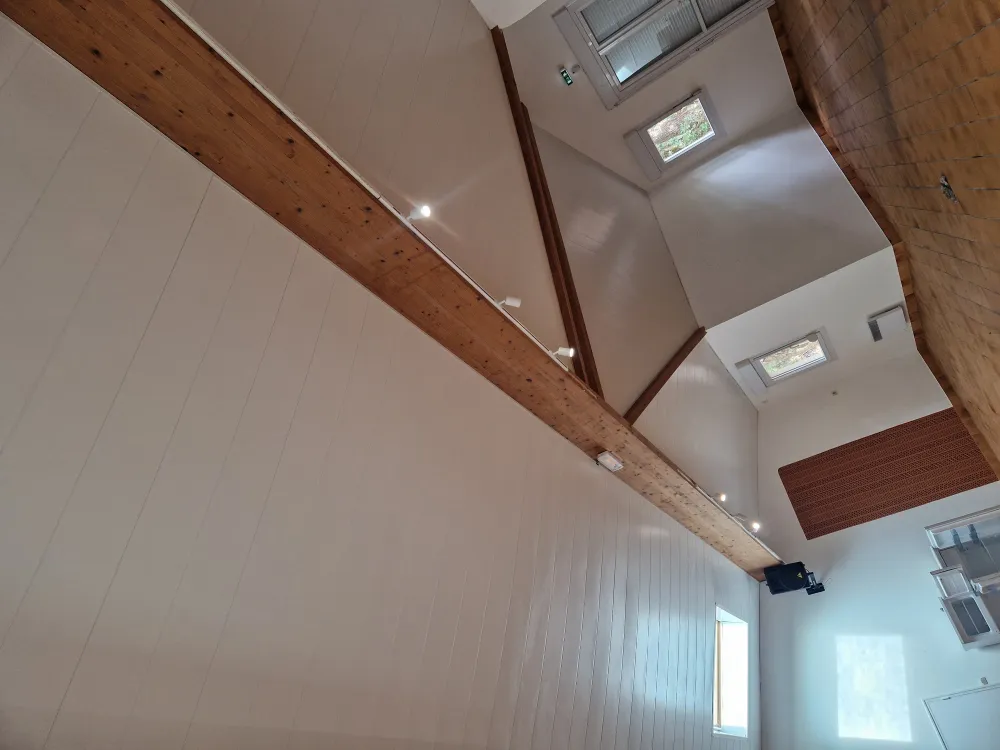 18-03-2026 Chantier camping du domaine de Fierbois à Capbreton, rénovation des plafonds de la salle d'animation en sous face aluminium (Sline) produit GUTTERKEL .