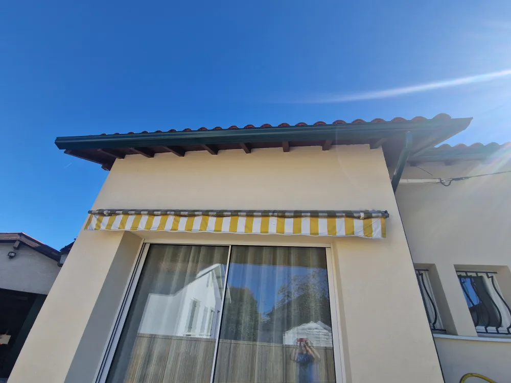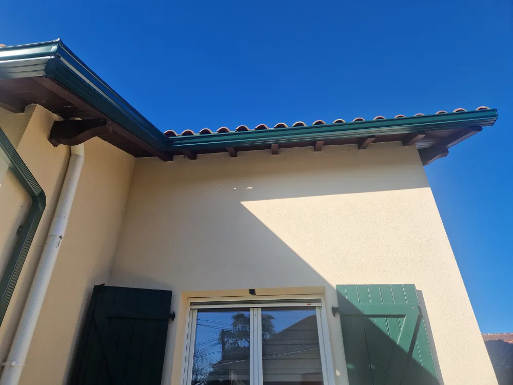 02-01-2026 Remplacement de gouttière en zinc par de la gouttière en aluminium forme corniche G325 RAL 6005. Remplacement de descente en zinc par de la descente petit modèle rectangulaire RAL 6005.