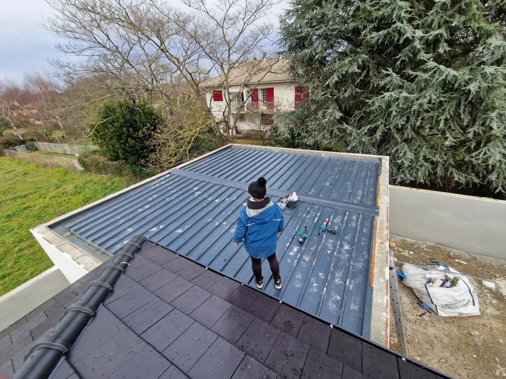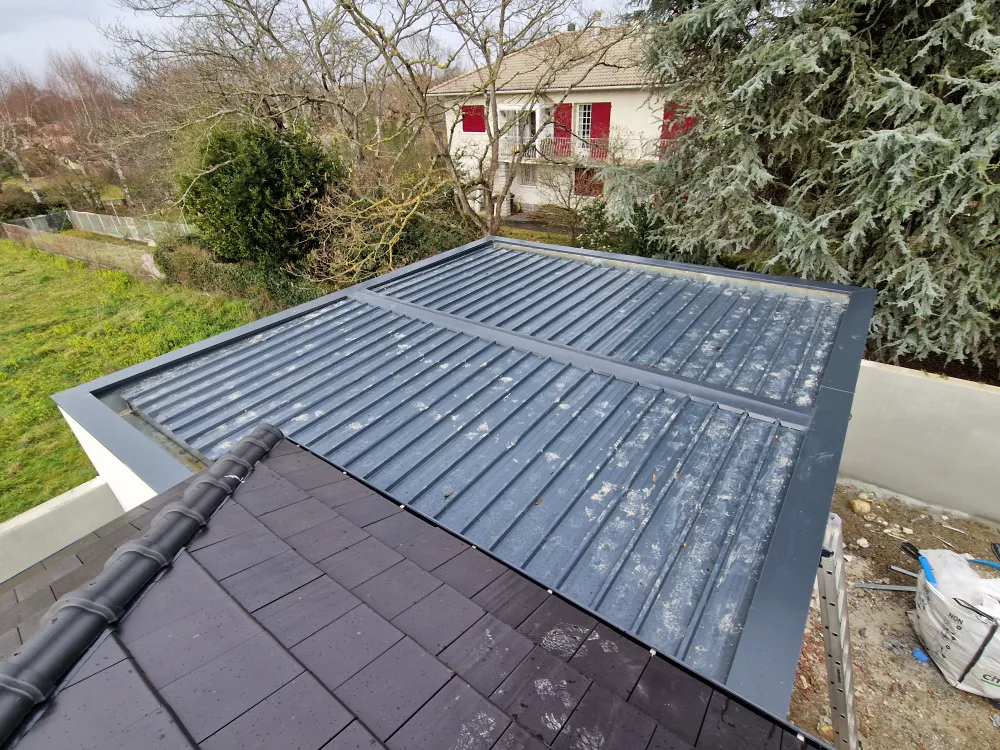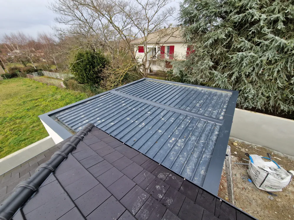 24-01-2026 Remplacez moi par votre texte... Salles Adour (65360) fournitures et pose de couvertines RAL 7016. Chantier fait en urgence afin d'étanché au plus rapide cette habitation et le garage.